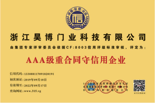 公司一直以來嚴(yán)格執(zhí)行ISO9001質(zhì)量體系和ISO14001環(huán)境管理體系標(biāo)準(zhǔn),建立了完備的科研、開發(fā)、生產(chǎn)、銷售服務(wù)體系。公司是浙江省門業(yè)協(xié)會(huì)會(huì)員單位,江山門業(yè)協(xié)會(huì)理事單位,中國木材與木制品流通協(xié)會(huì)會(huì)員單位,江山市消防協(xié)會(huì)副會(huì)長單位。